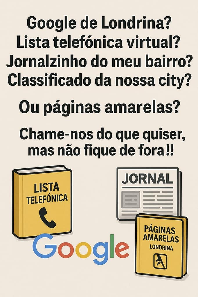 “Mostre sua empresa para quem realmente importa: Londrina!” Diferente de anúncios caros no Google, Facebook, OLX ou mídia tradicional, nossas soluções são focadas no público local, com resultados mais rápidos e econômicos. Seja mais inteligente, economize tempo e dinheiro, e destaque seu negócio de forma eficaz na sua cidade! . Invista pouco e tenha retorno real!